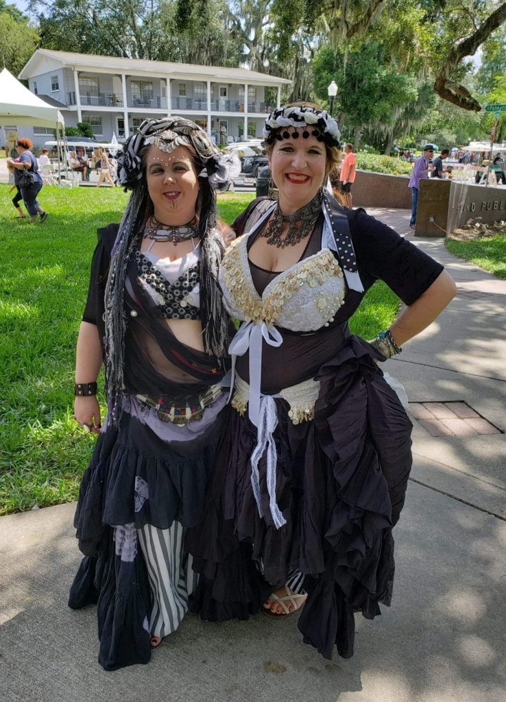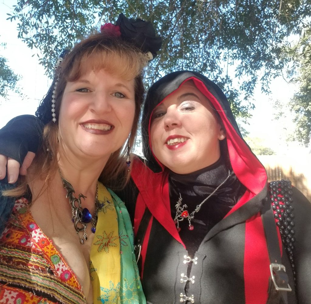 That was not my favorite dance style or costumes. Thus a change in troupes and on to tribal style belly dancing. This style of dance is a big game of Simon Says! Which makes this so much fun. My instructor is an amazing dancer that lives life by her own rules and loves to get us to be creative with our costuming. When my son started playing hockey, belly dance class became a thing of the past that I hope to soon make time for. What’s a girl to do with all those beautiful 25 yard skirts, belts, and matching bra tops? Well create renaissance faire wear of course.